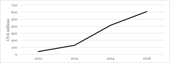 Figura 1: Financiamiento para capital de riesgo para empresas tecnológicas africanas de reciente creación, en US$ millones
