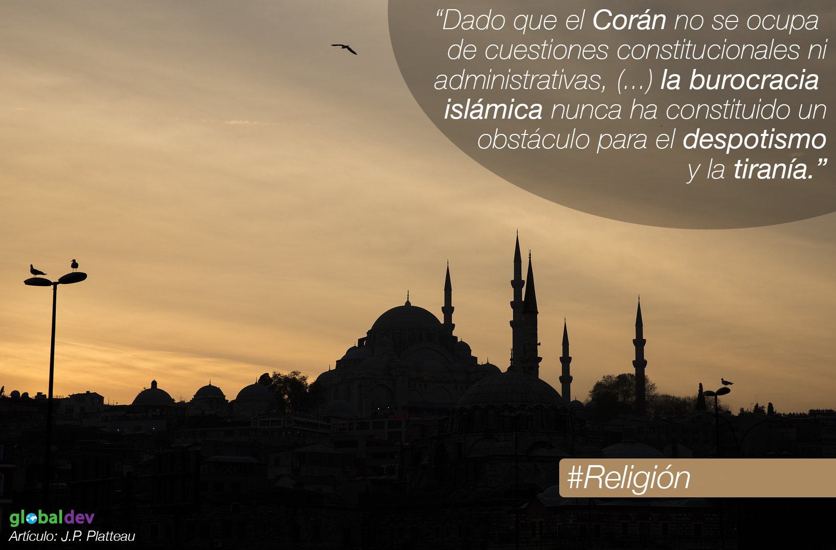 Dado que el Corán no se ocupa de cuestiones constitucionales ni administrativas, y las pocas prescripciones islámicas con respecto a la conducta política se expresan en términos bastante generales, la burocracia islámica nunca ha constituido un obstáculo para el despotismo y la tiranía. Incluso en los mejores casos, el poder compensatorio de la religión se limita a ofrecer a los opositores políticos refugio en los santuarios.